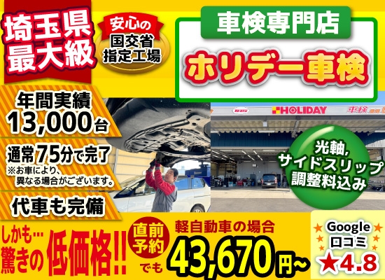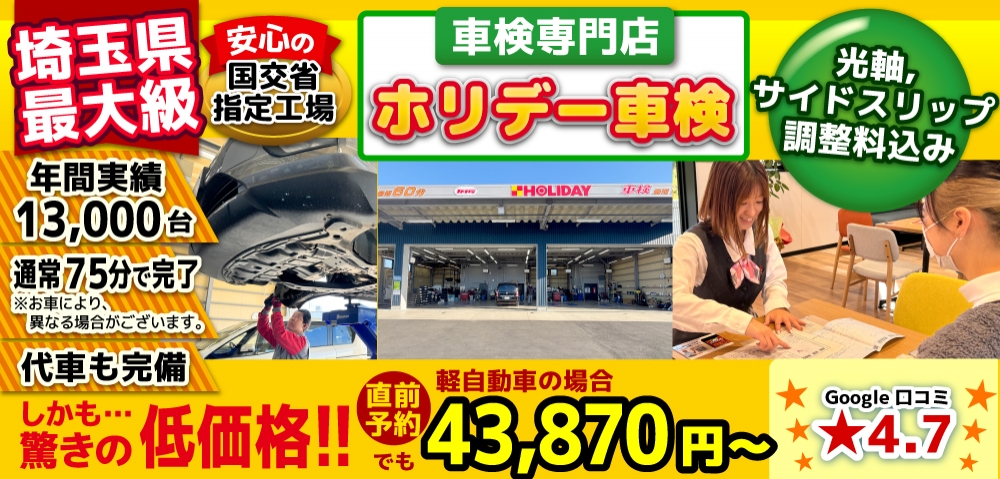 さいたまの格安車検4.3万~!岩槻で車検年1.3万台